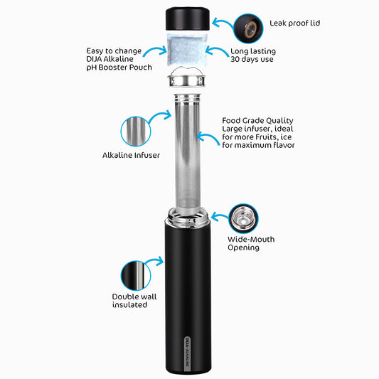 DIJA Alkaline Insulated Water Bottle Includes Filter Improve PH 9+, Keep Cold up to 24 hours, 500ml Stainless Steel Water Bottle